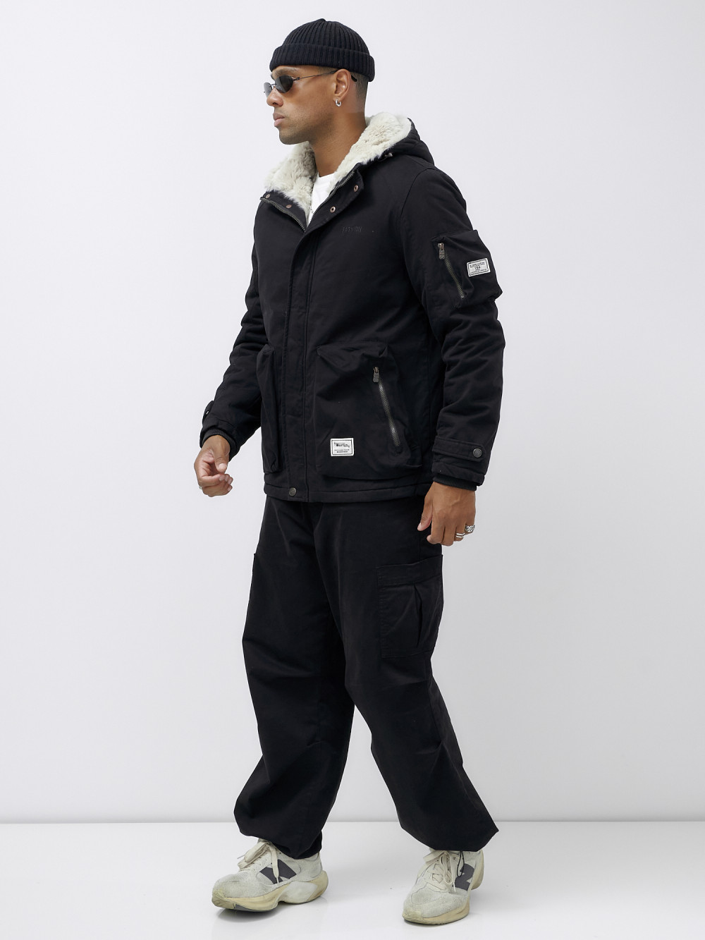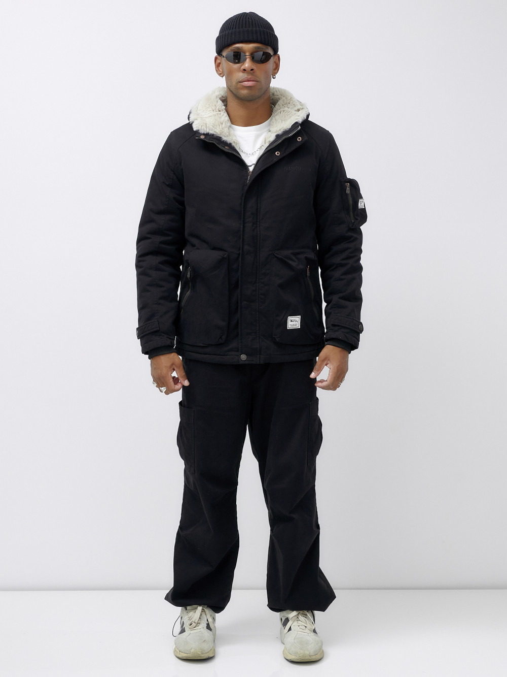Куртка молодежная мужская зимняя с мехом черного цвета 2611Ch