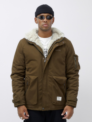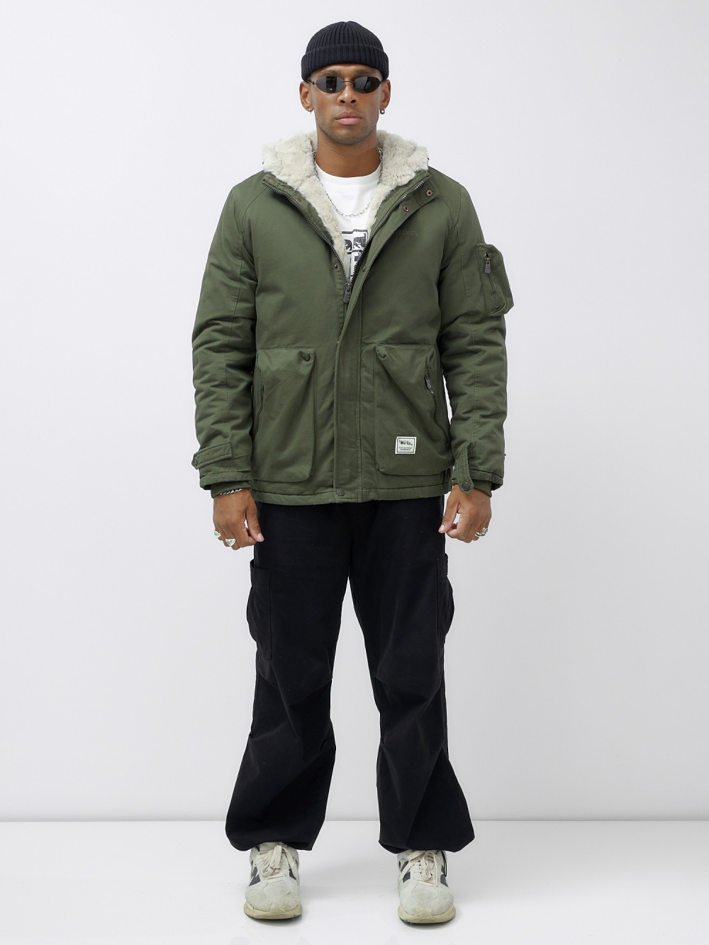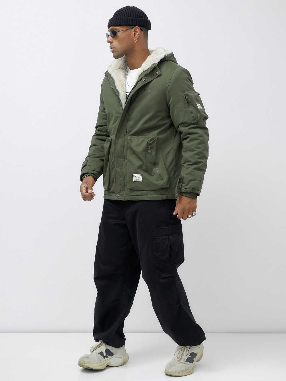 Куртка молодежная мужская зимняя с мехом цвета хаки 2611Kh