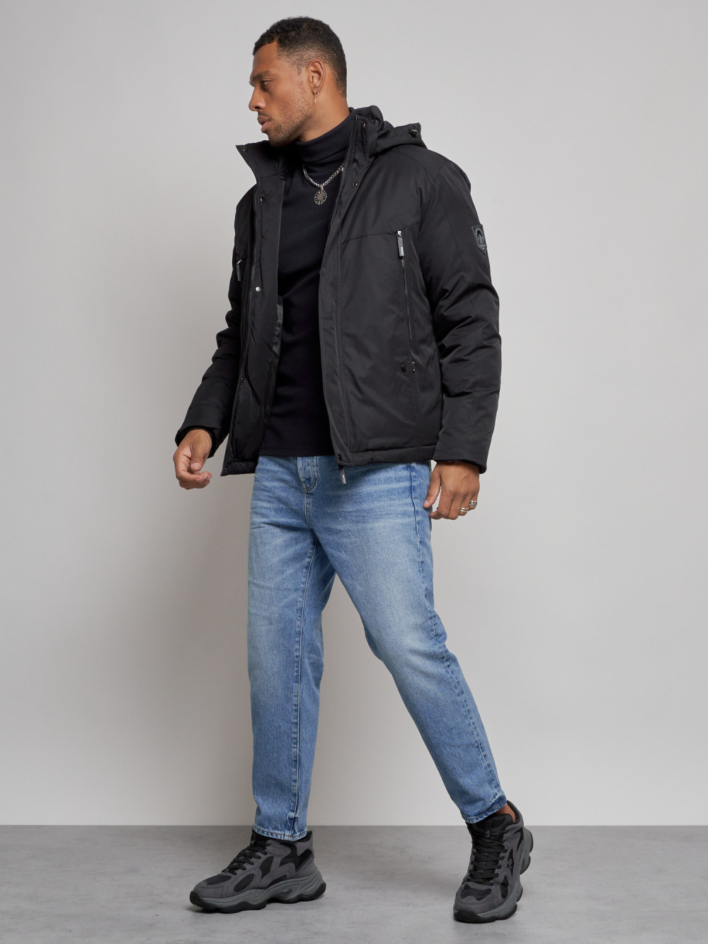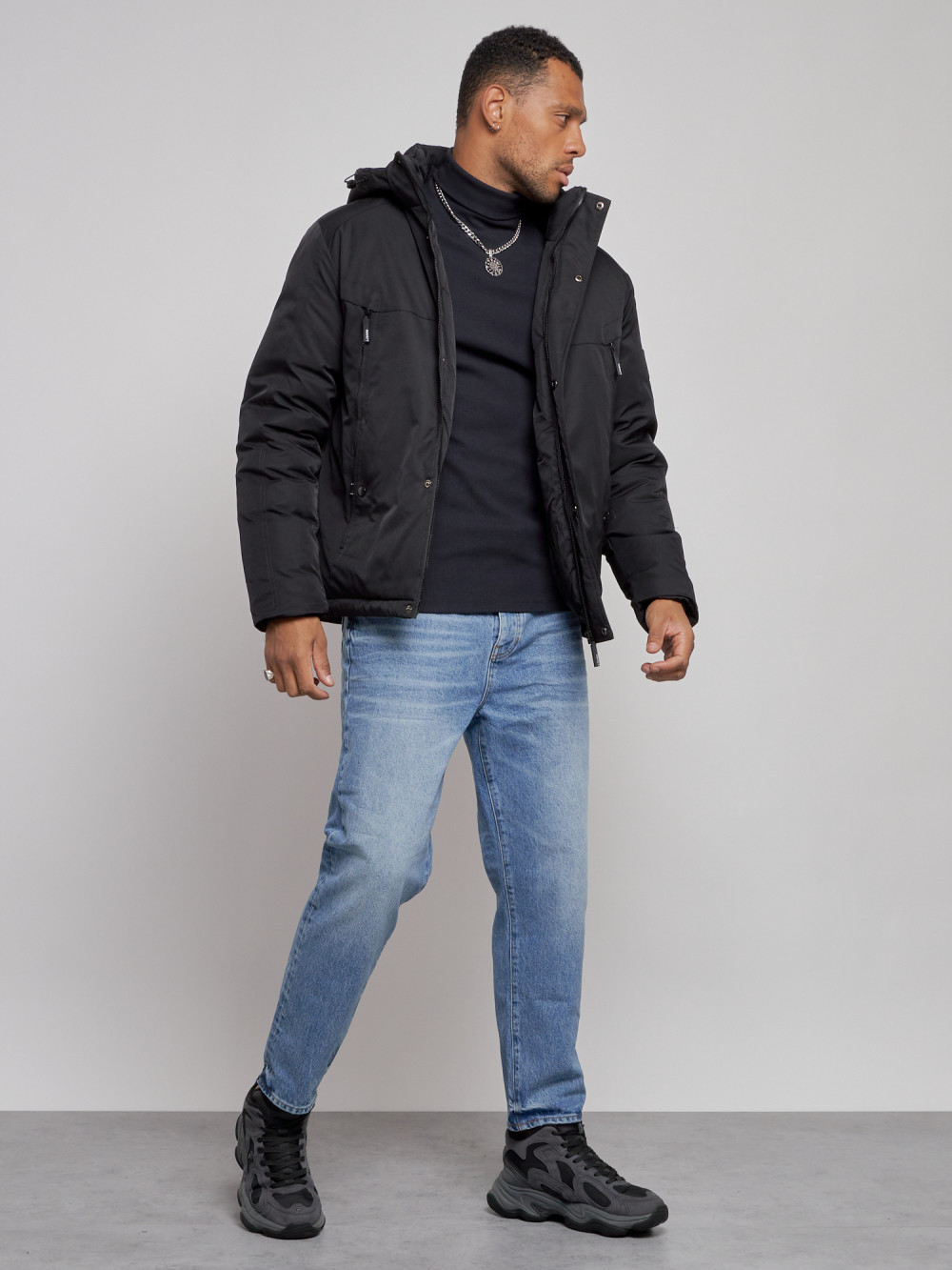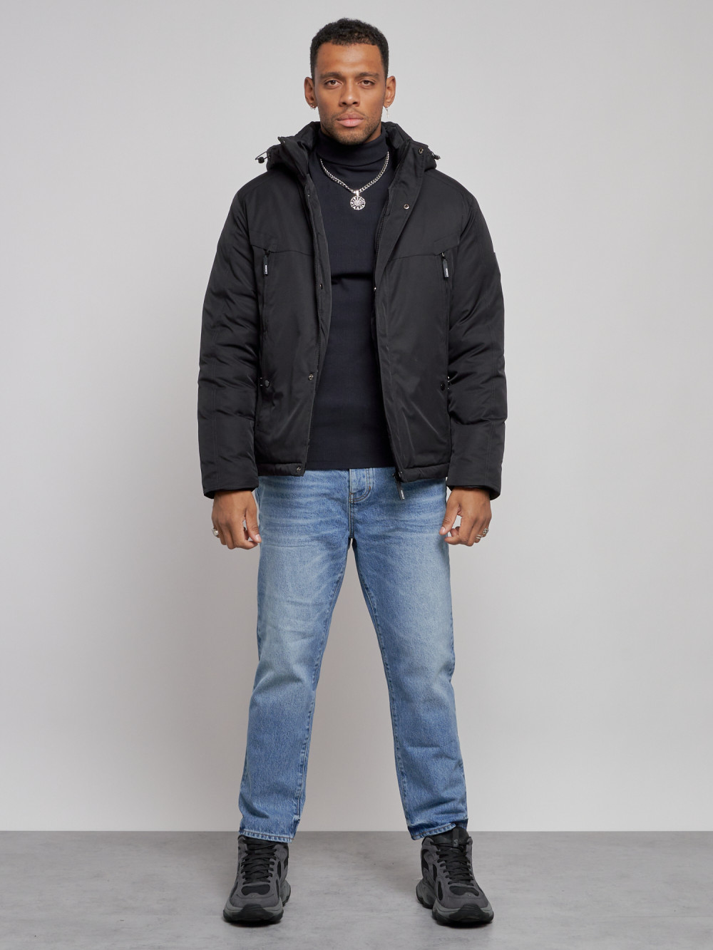 Куртка мужская зимняя с капюшоном спортивная великан черного цвета 8332Ch