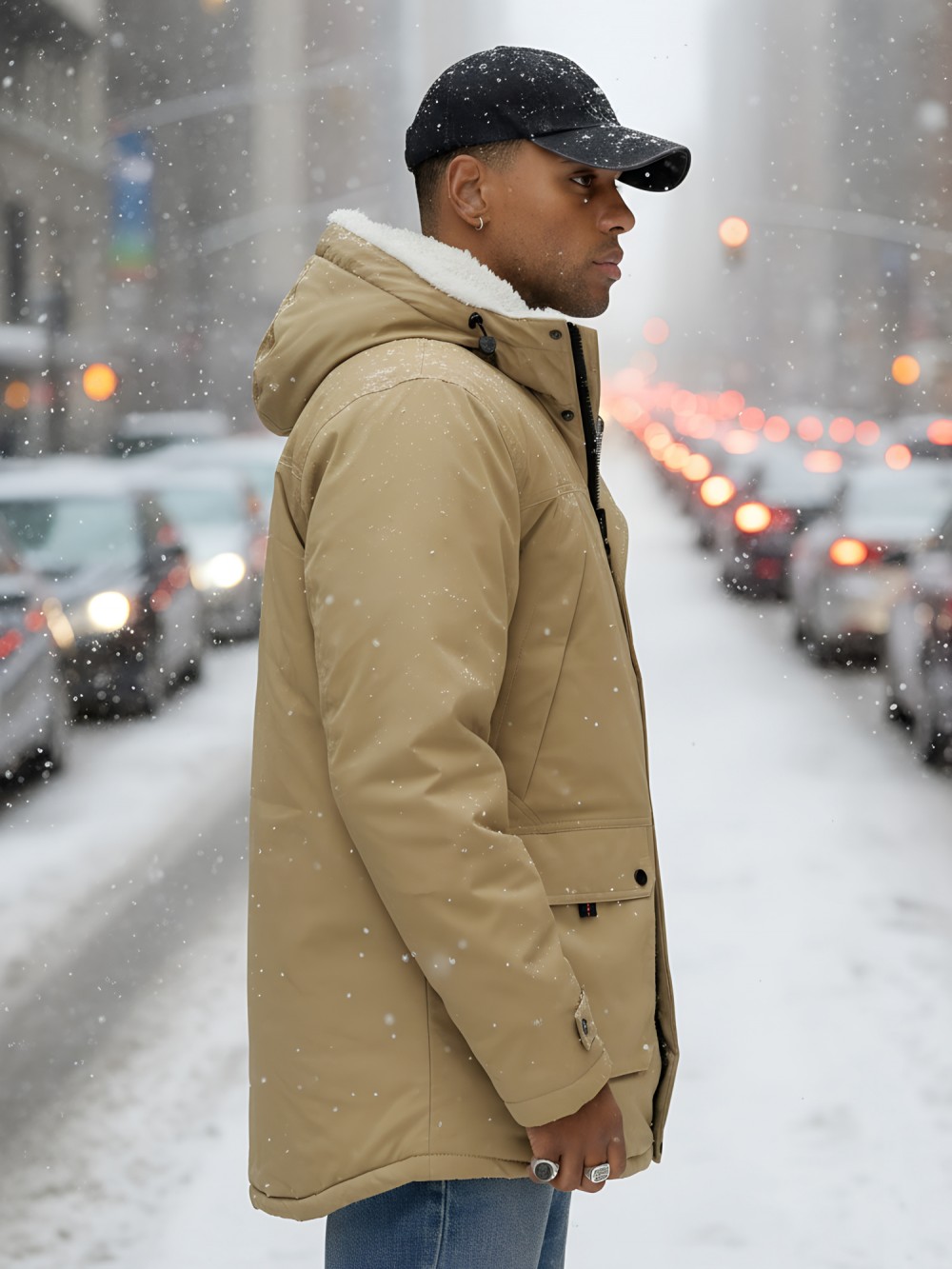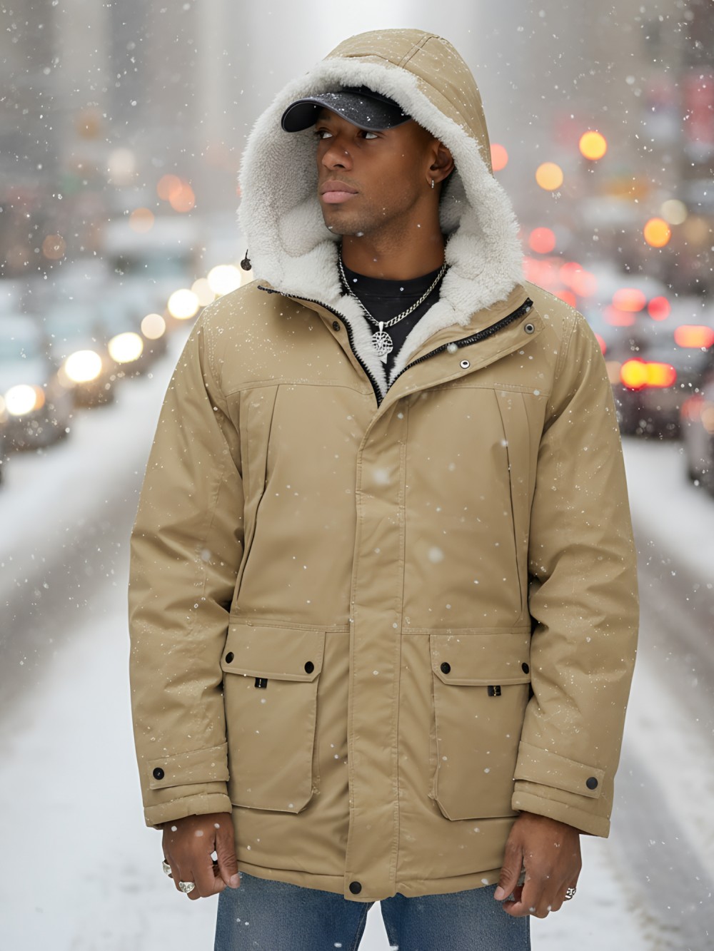 - Не съемный капюшон с меховой подкладкой: Защитит от ветра и холода, добавляя нотку элегантности.
