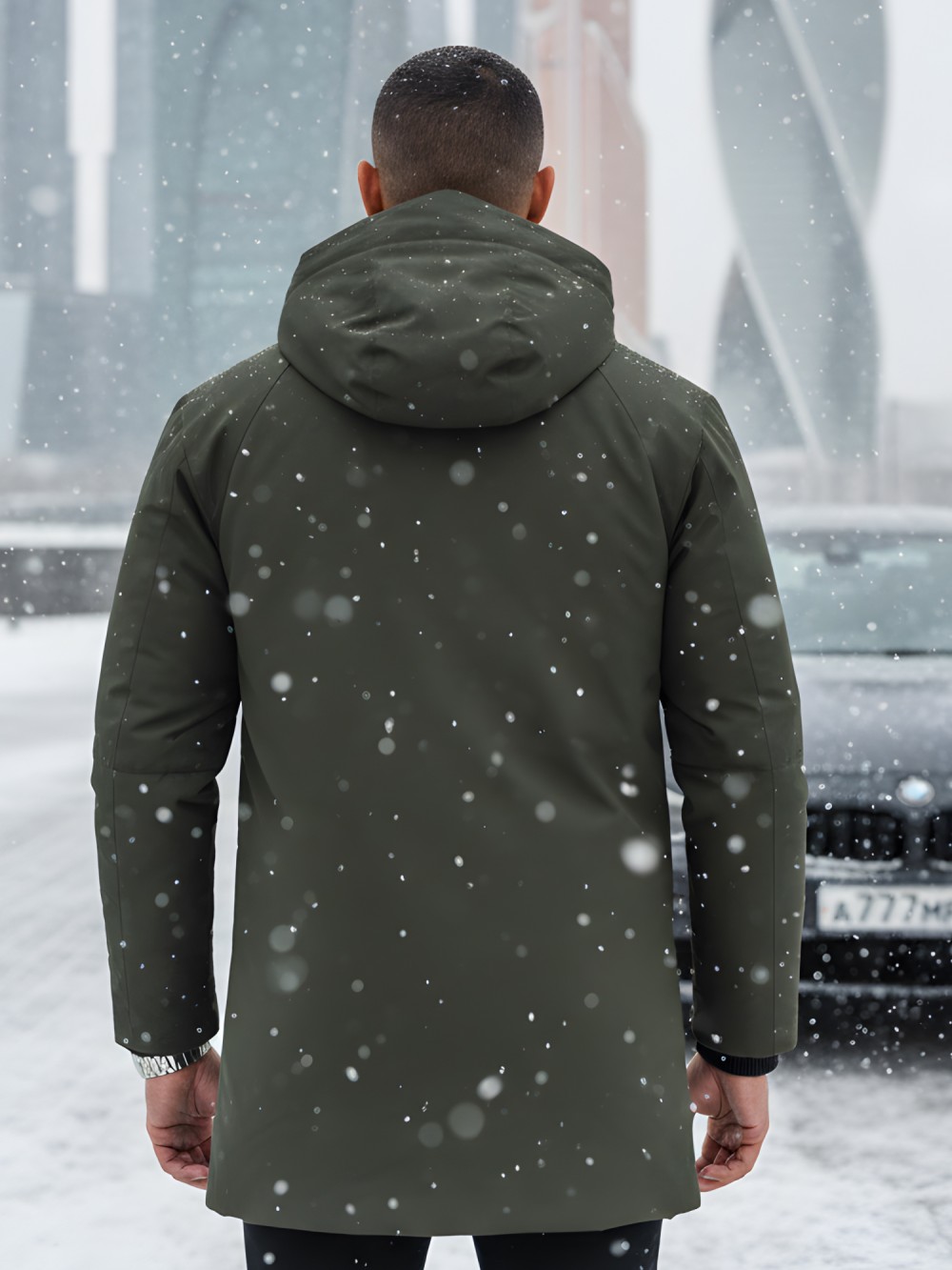 Зимняя мужская парка с капюшоном — практичная и надёжная модель, созданная для повседневной носки и активного отдыха в холодное время года. Свободный крой до колена обеспечивает комфорт и свободу движений, а плотная водоотталкивающая ткань с проклеенными швами защищает от ветра и влаги. Утеплитель тинсулейт плотностью 300 г/м² удерживает тепло даже в сильные морозы, оставаясь лёгким и удобным в носке.