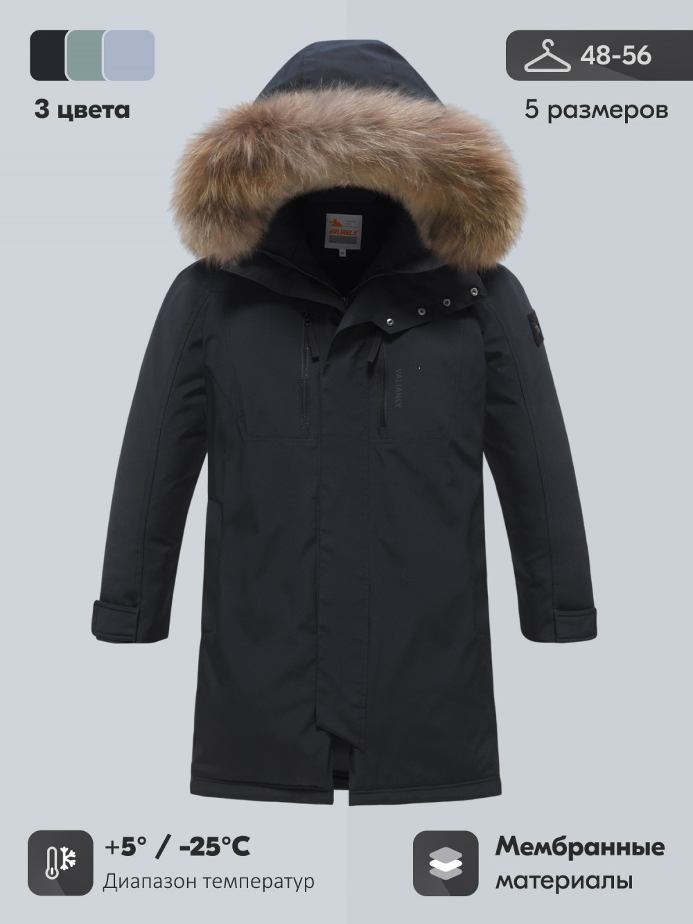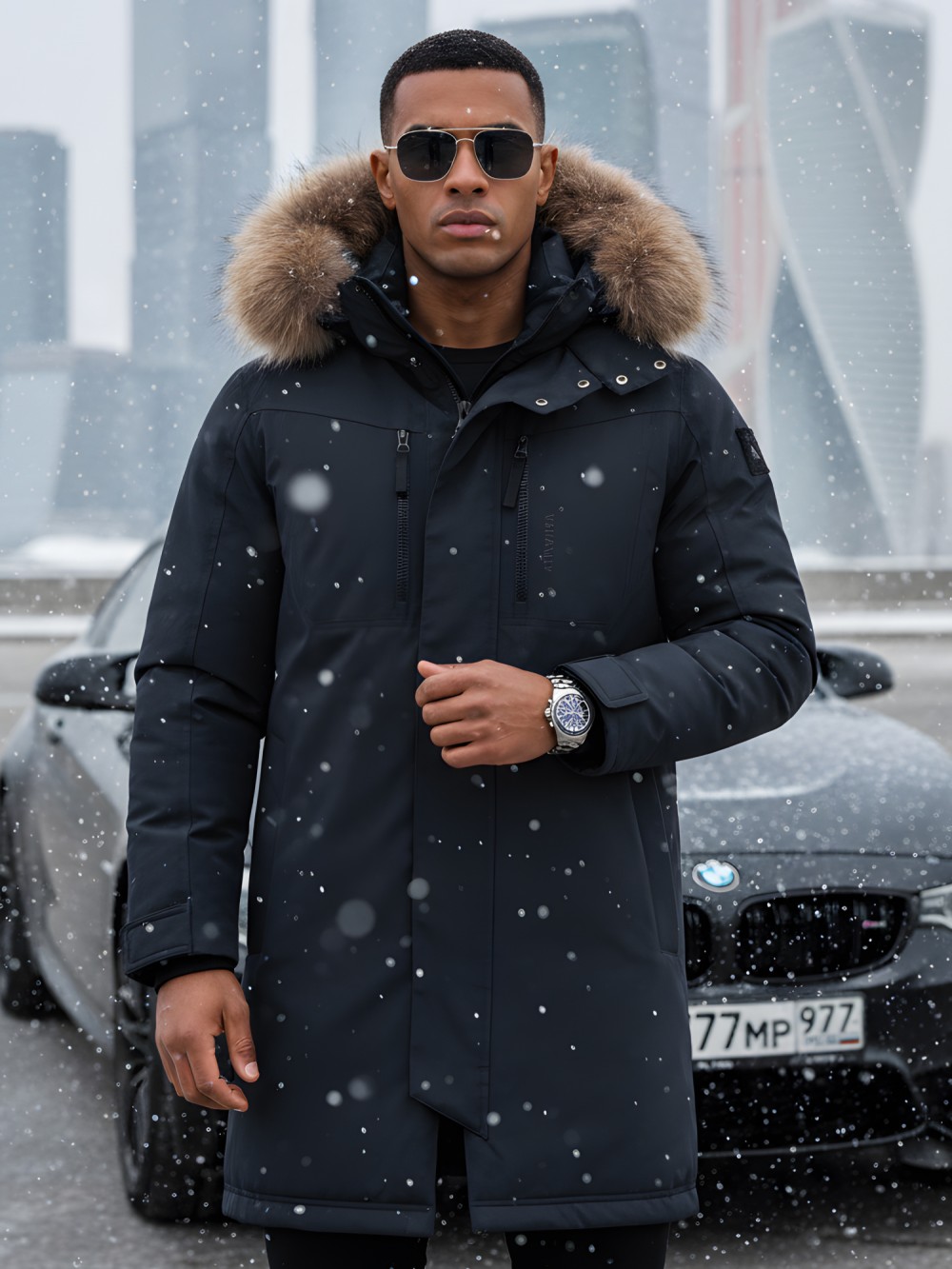 Светоотражающие детали делают владельца заметным в тёмное время суток, а современный дизайн с элементами family look подчёркивает универсальность модели. Эта парка станет отличным выбором для мужчин, которые ищут долговечную и практичную зимнюю одежду, совмещающую функциональность, надёжную защиту и статусный акцент натурального меха енота.