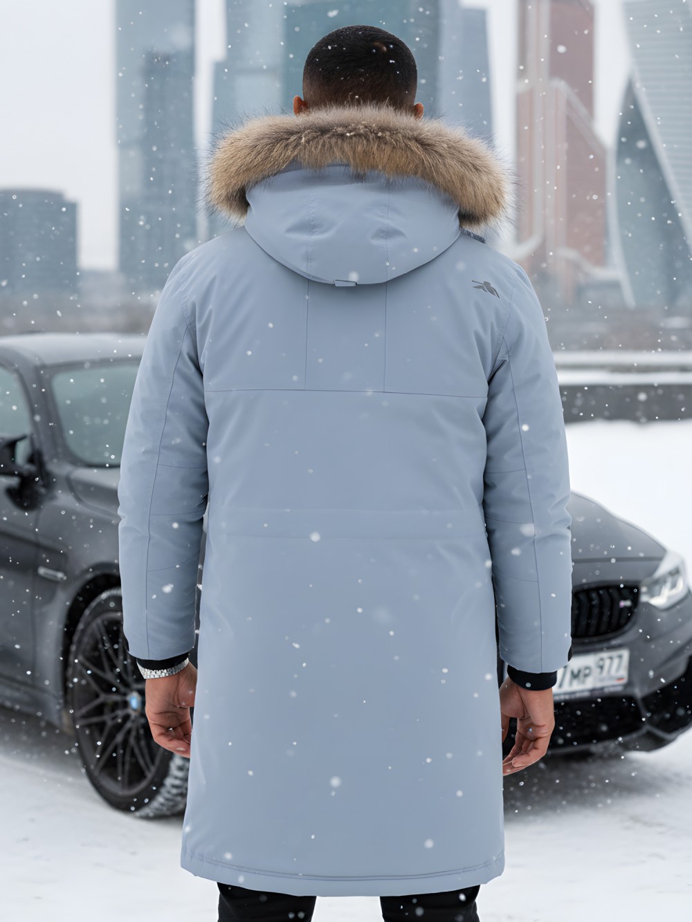 Светоотражающие детали делают владельца заметным в тёмное время суток, а современный дизайн с элементами family look подчёркивает универсальность модели. Эта парка станет отличным выбором для мужчин, которые ищут долговечную и практичную зимнюю одежду, совмещающую функциональность, надёжную защиту и статусный акцент натурального меха енота.