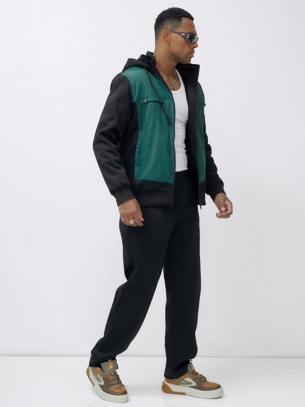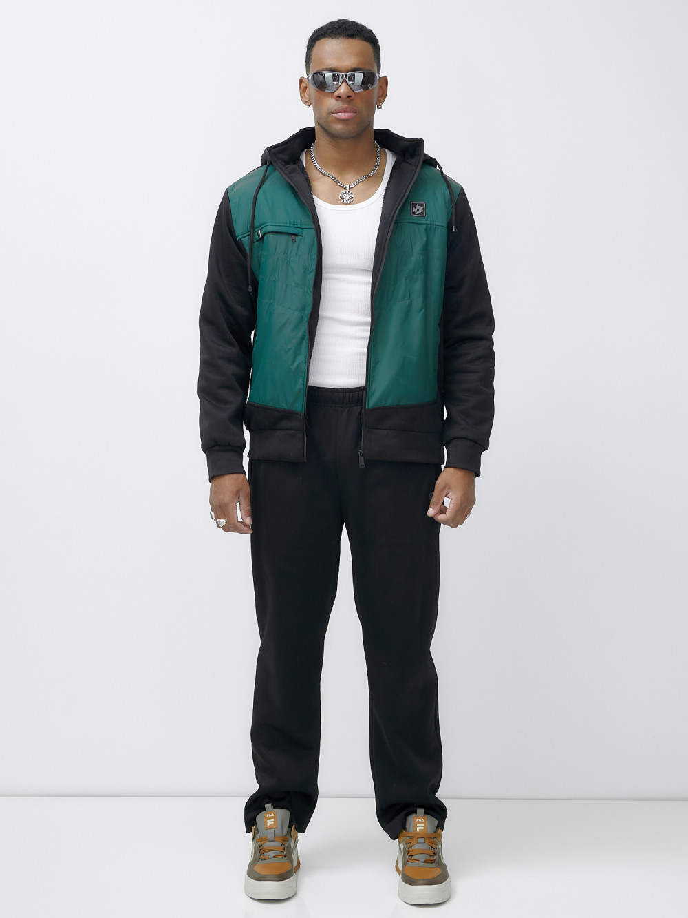 Спортивный костюм мужской зимний с начесом зеленого цвета 7336Z