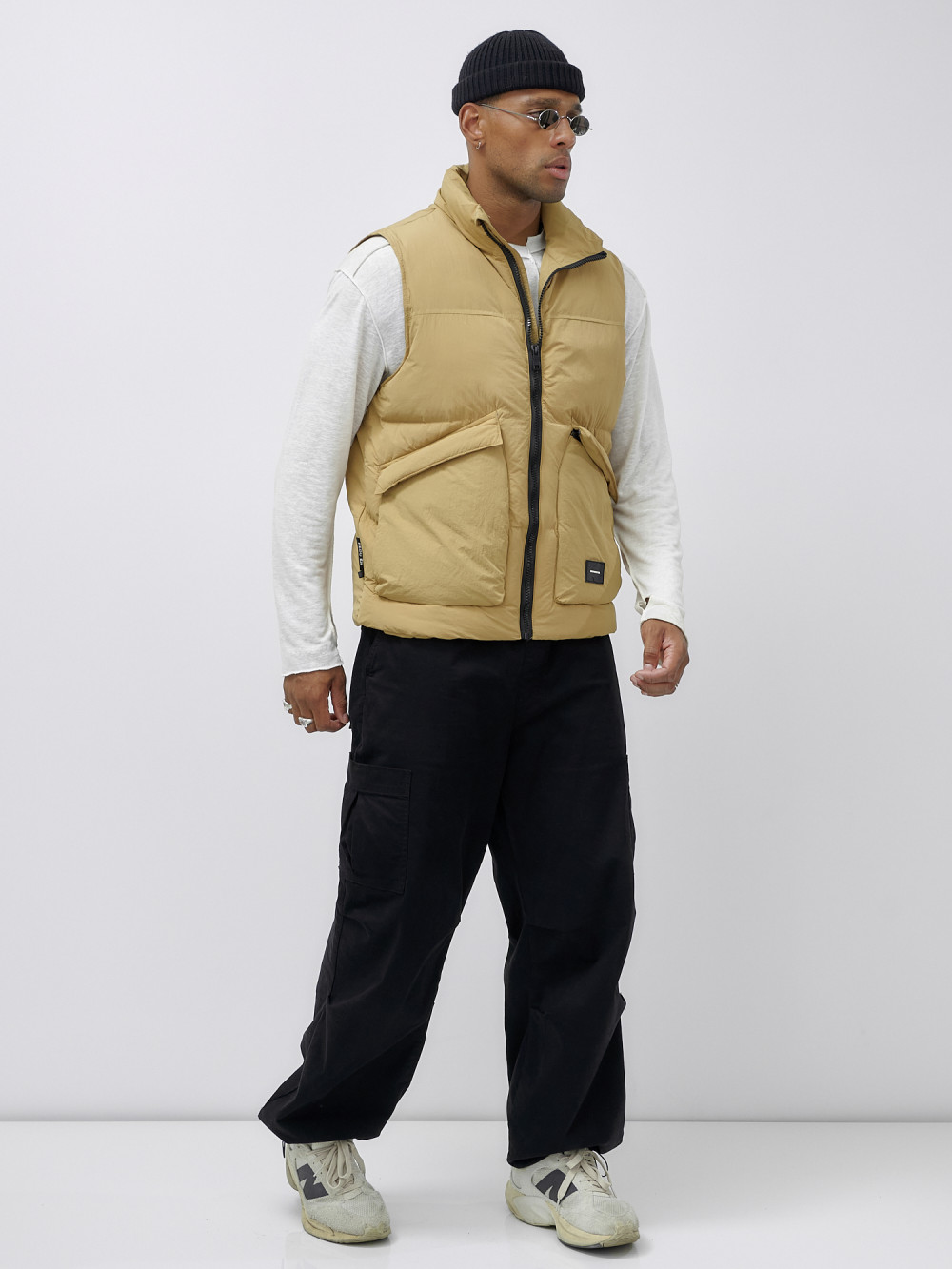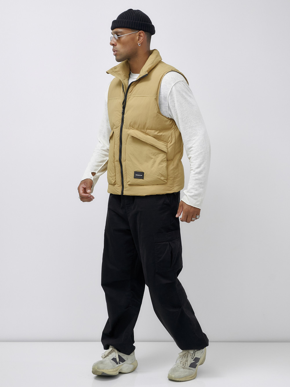 Жилет мужской утепленный спортивный бежевого цвета 15322B