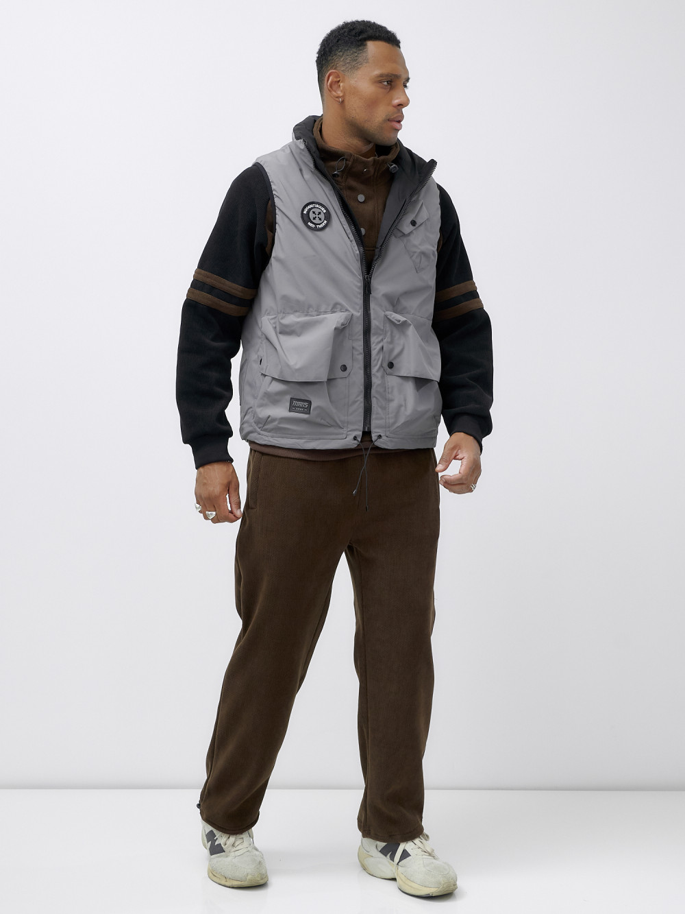 Жилет мужской утепленный спортивный серого цвета 15323Sr