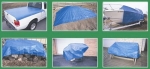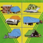 «Тарпаулин» - это материал, который на вид напоминает мешковину, ламинированную с двух сторон. Основная задача такого тента не пропускать влагу с чем он без труда справляется. Металлические кольца (люверсы) есть по всему периметру (они обеспечивают простое и надежное крепление).
