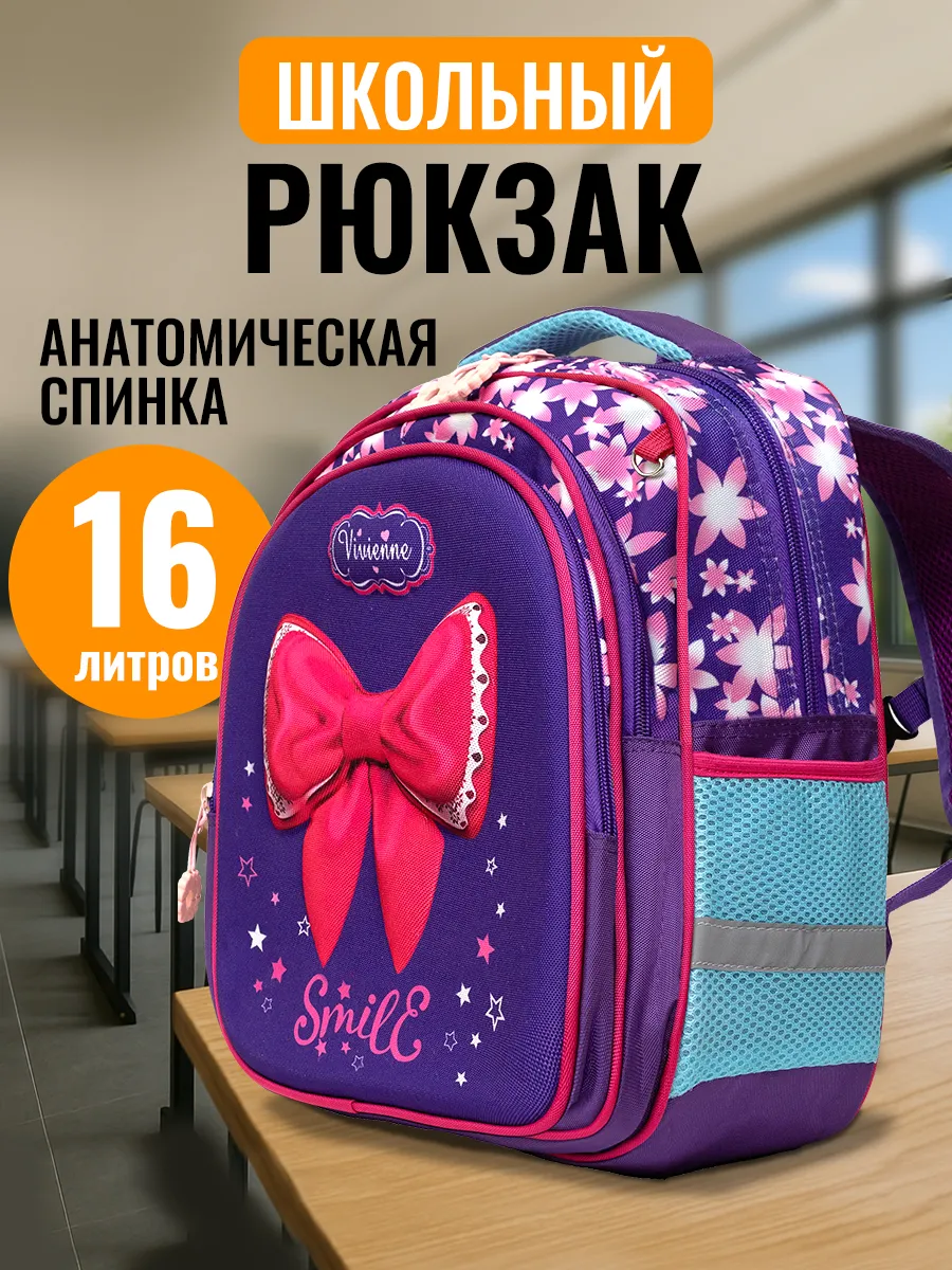574 р. 1364 р. 1 шт. доступно/ Рюкзак детский Wonder "Бантик" (26х37х19 см, светоотражатели, фиолетовый)