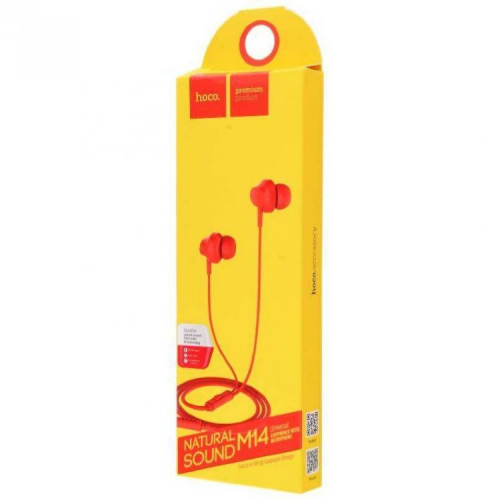 Гарнитура HOCO M14 Intal Sound микрофон, кнопка ответа, кабель 1.2м (красный)