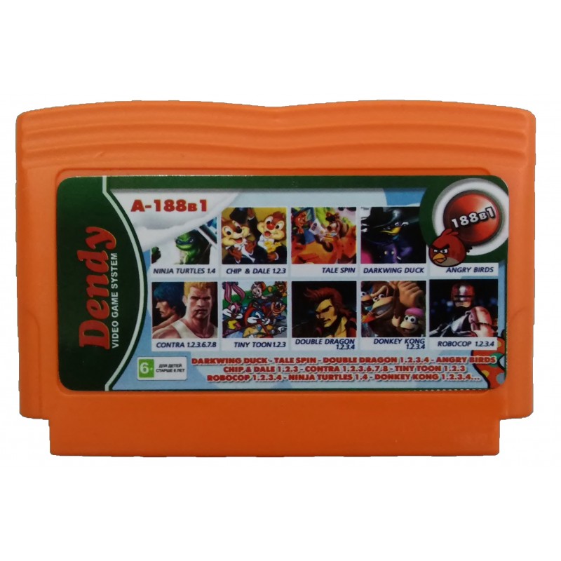 Картридж 8 bit 188 игр А-188, DARKWING DUCK+CHIP&DALE 1.2.3+TURTLES1.4+TALE SPIN+POBOCOP1.2.3.4+CON