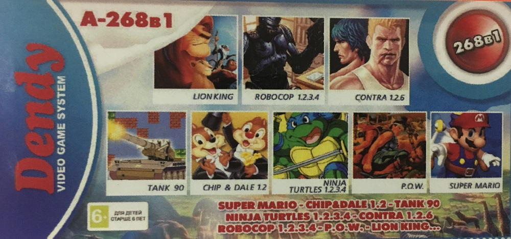 Картридж 8 bit 268 игр A-268в1 S.MARIO+CHIP&DALE 1.2+TANK 90+NINJA TURTLES 1.2.3.4+CONTRA 1.2.6+ROBO