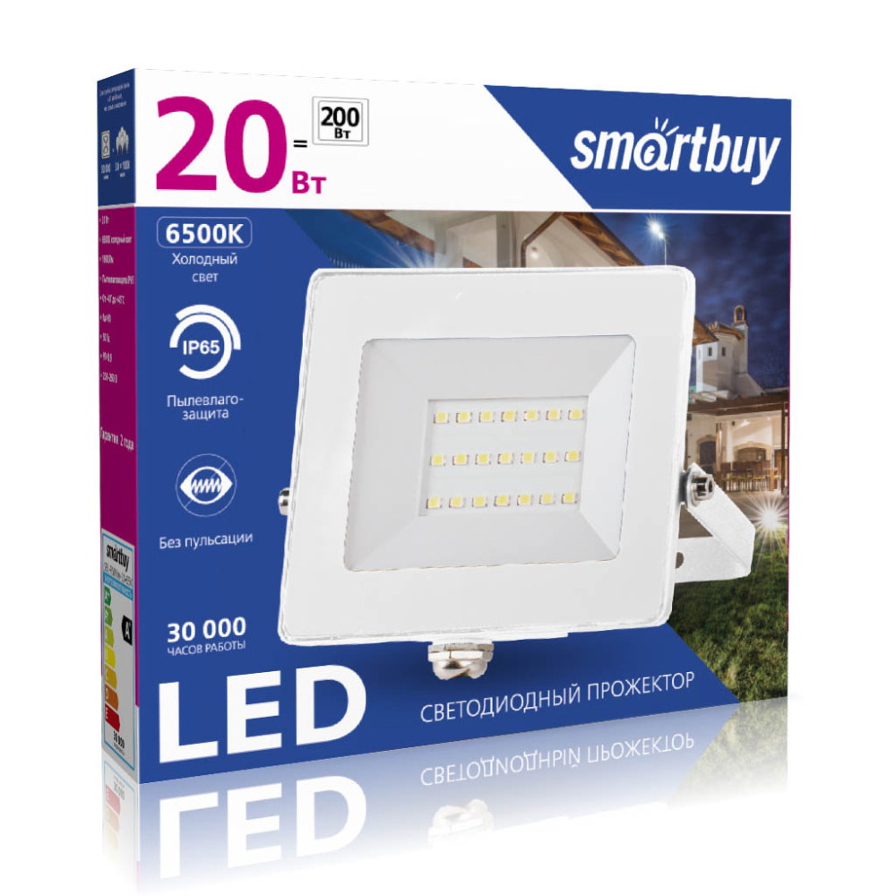 Прожектор SBL-FLWhite-20-65K является энергоэффективной заменой галогенных прожекторов. Он обладает степенью защиты от пыли и влаги IP65, подходит как для внутреннего, так и для наружного использования.