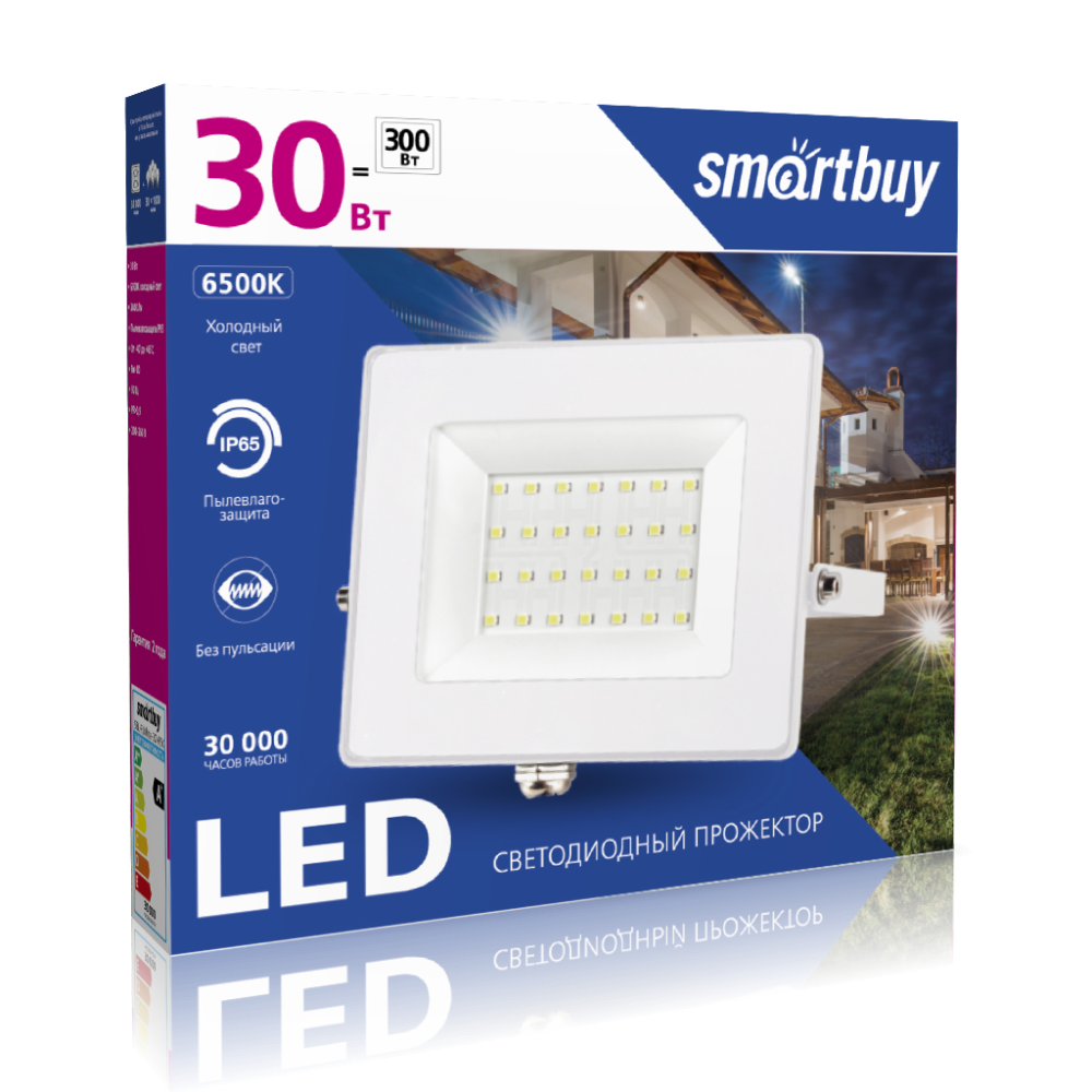 Прожектор SBL-FLWhite-30-65K является энергоэффективной заменой галогенных прожекторов. Он обладает степенью защиты от пыли и влаги IP65, подходит как для внутреннего, так и для наружного использования.