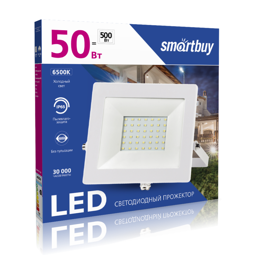 Прожектор SBL-FLWhite-50-65K является энергоэффективной заменой галогенных прожекторов. Он обладает степенью защиты от пыли и влаги IP65, подходит как для внутреннего, так и для наружного использования.