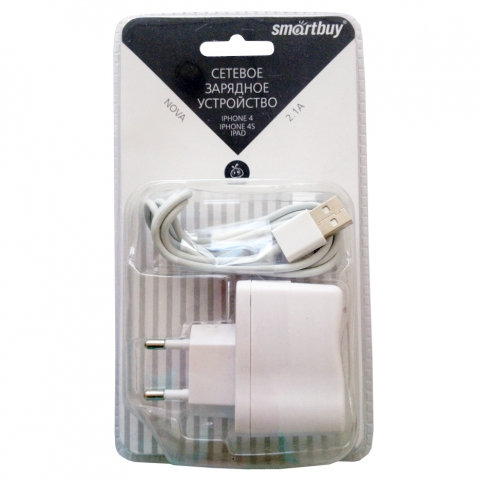 СЗУ SmartBuy SBP-1140 Nova, iPhone 4, 30pin, кабель (белый)