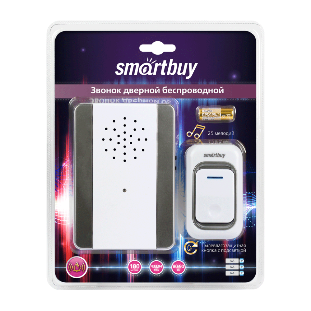 Беспроводной звонок SmartBuy SBE-11-DP7-25 имеет 25 полифонических мелодий. Кнопка звонка работает в радиусе 100 метров от приемного блока. Беспроводная конструкция обеспечивает легкий и быстрый монтаж, исключающий необходимость прокладки кабеля. Обеспечивает стабильный сигнал без помех.