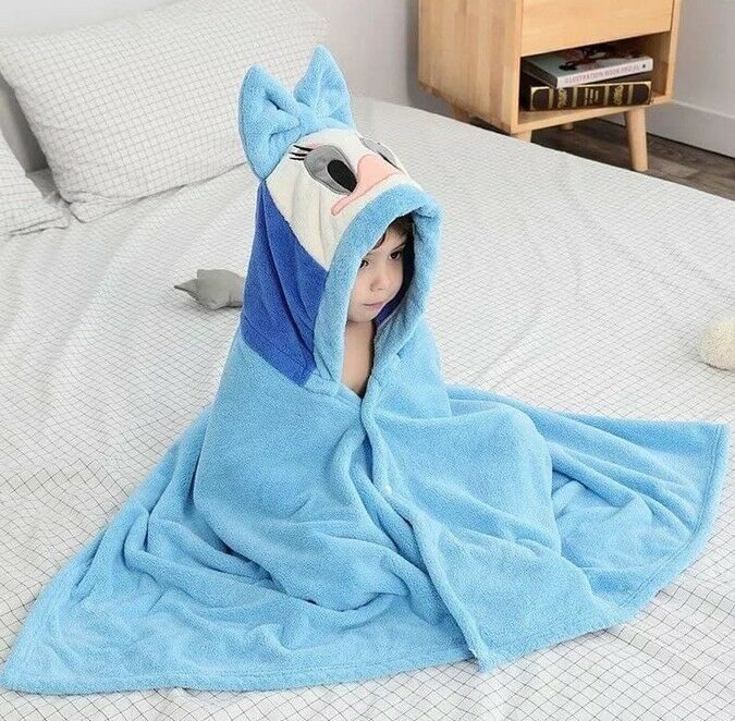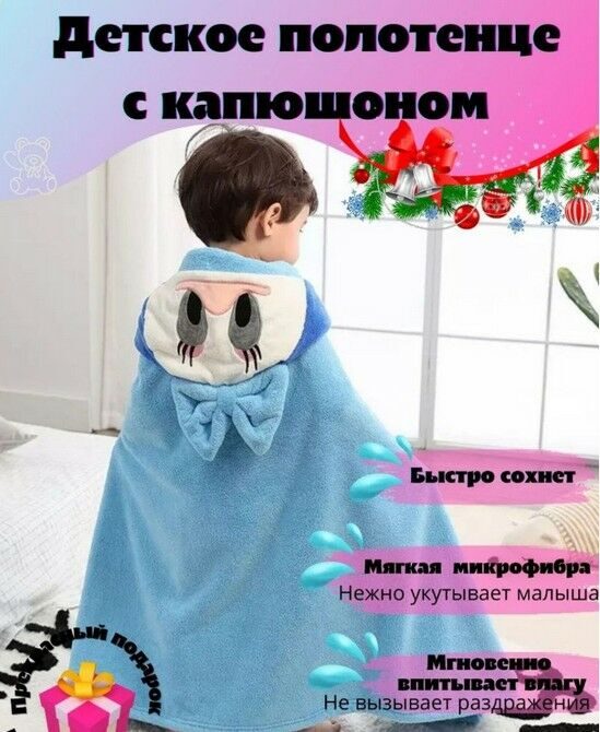 Детское полотенце с капюшоном "Уточка" -ГОЛУБОЙ 70*140 см.на кнопках