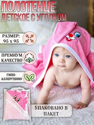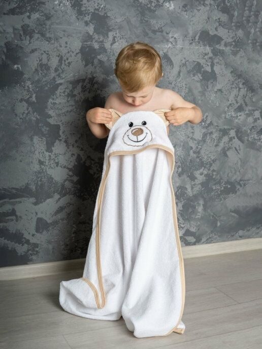 Уголок махровый детский "Мишка"-бел-бежев. 95*95 см. хлопок 100%