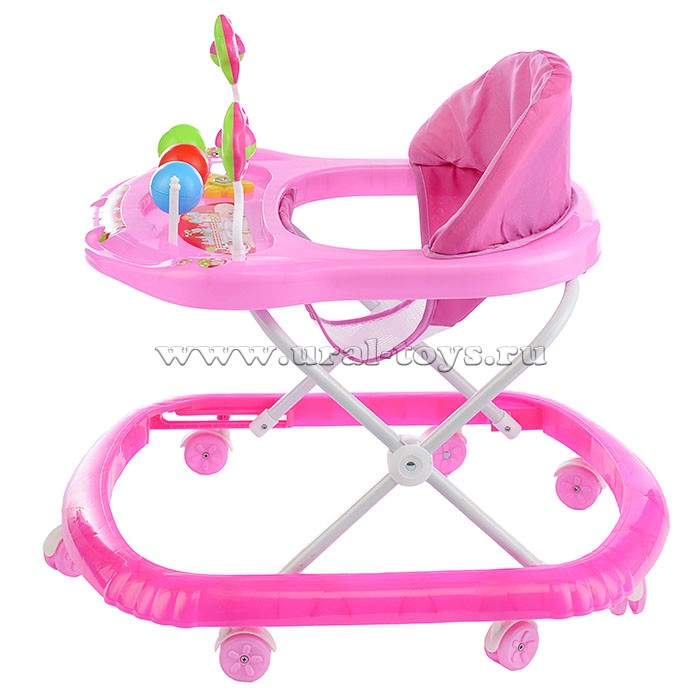 Ходунки "Шарики с цветочками" с погремушками и шарами (розовый) в пакете