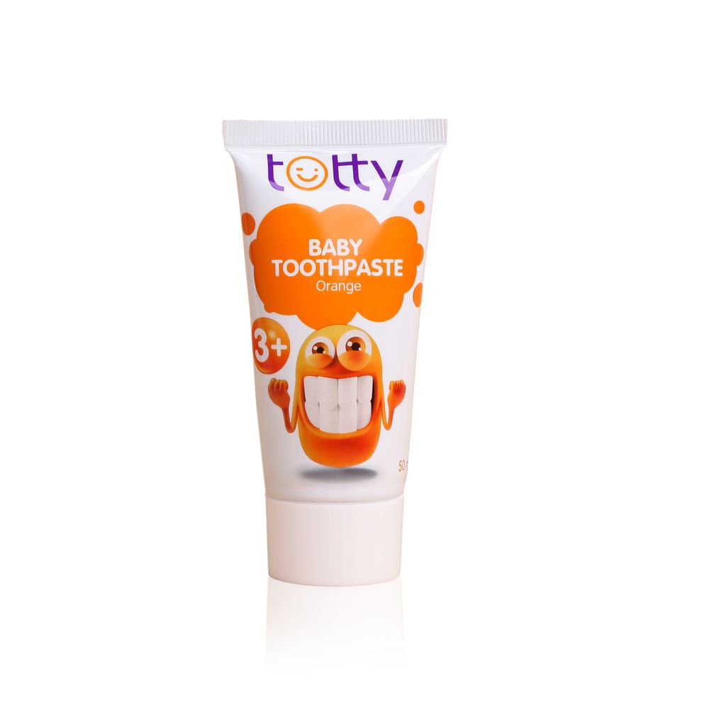 Детская зубная паста TOTTY со вкусом апельсина поможет мамам превратить ежедневные заботы о ребенке в радостные моменты.