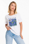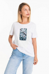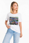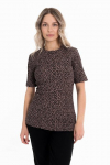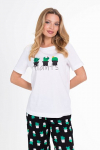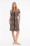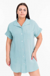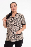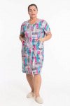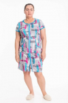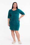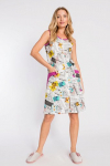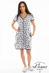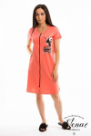 Халат с застёжкой на молнию выполнен из х/б полотна с набивным рисунком. Спереди накладные карманы. Горловина обработана бейкой с кантом, низ рукавов и верх карманов украшены двойными планками из отделочного полотна.