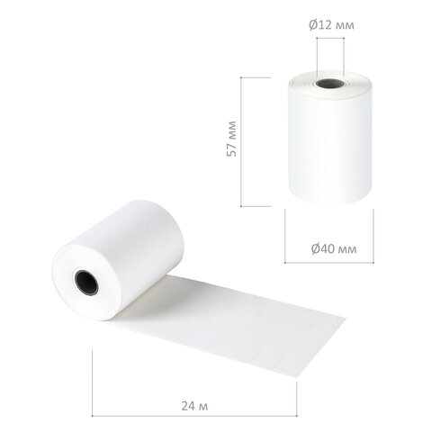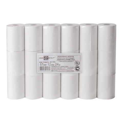 Чековая лента ТЕРМОБУМАГА 57 мм (диаметр 40 мм, длина 24 м, втулка 12 мм) КОМПЛЕКТ 18 шт., AKZENT 110368