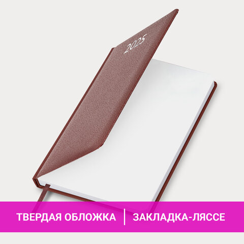 Ежедневник датированный 2025 А5 138x213 мм BRAUBERG "Profile", балакрон, коричневый, 115796