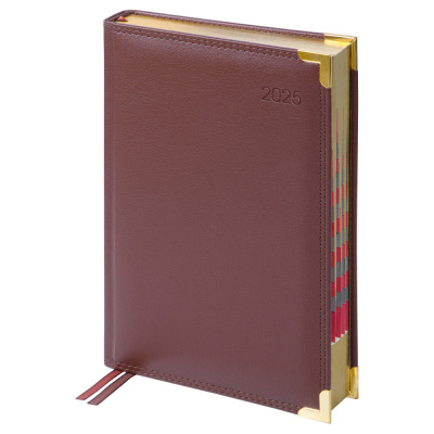 Ежедневник датированный 2025г., А5, 184л., Delucci, Фактурная кожа, зол. срез, коричневый, DD5_90502, 368990