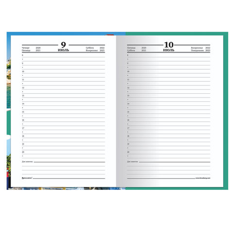 Универсальный ежедневник, который позволяет вести записи в любом году из четырех, указанных на страницах внутреннего блока. Внутренний блок содержит 192 листа офсетной бумаги плотностью 60 г/м2. Обложка 7БЦ (твердый переплет с рисунком и глянцевой пленкой) обеспечивают долгий срок службы. Помимо прочего ежедневник содержит коды городов и телефонную книгу. Формат А5.