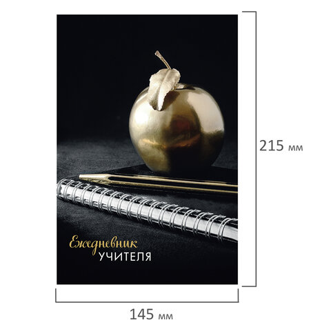 Ежедневник учителя специализированный А5, BRAUBERG, ЯБЛОКО НА ЧЕРНОМ А5, 145*215мм, 144л, 129235