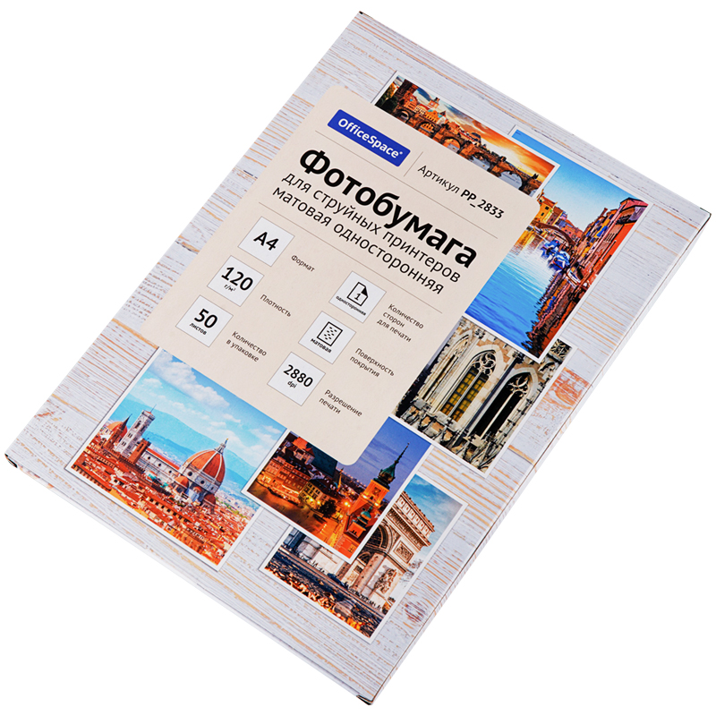 Фотобумага А4 для стр. принтеров OfficeSpace, 120г/м2 (50л) матовая односторонняя, PP_2833, 302535