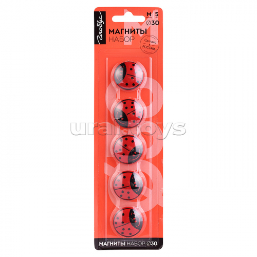 Набор магнитов Божья коровка 30 мм 5 шт. красные блистер