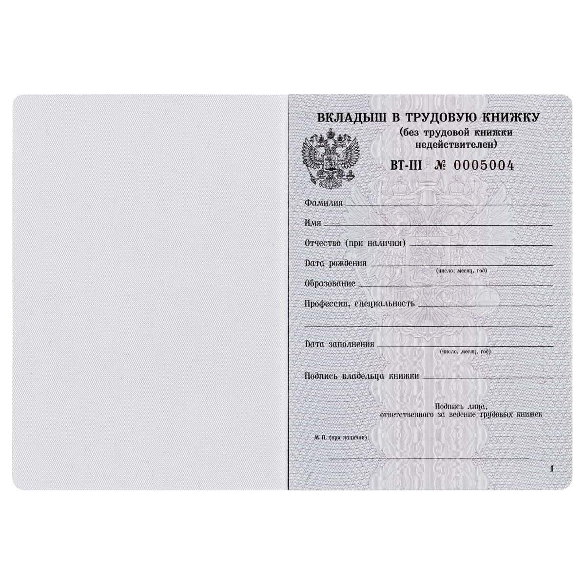 Вкладыш в трудовую книжку нового образца (с 01.01.2023 г., утвержден приказом Минтруда России от 19.05.2021 №320н)