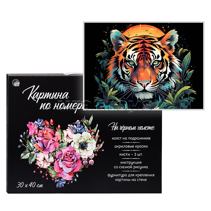 Холст с красками 30х40 см по номерам "Притаившийся тигр" (30цв.)
