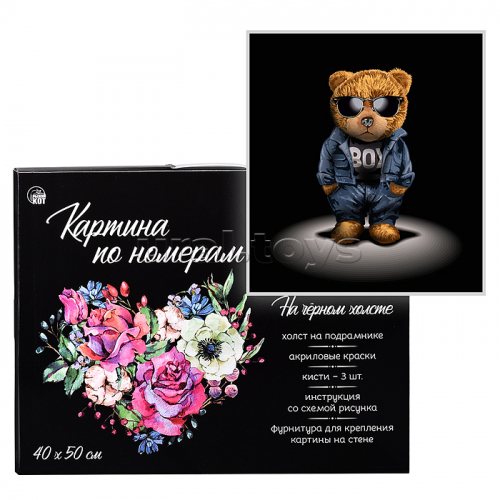 Холст с красками 40х50 см по номерам "Модный медвежонок" (24цв.)