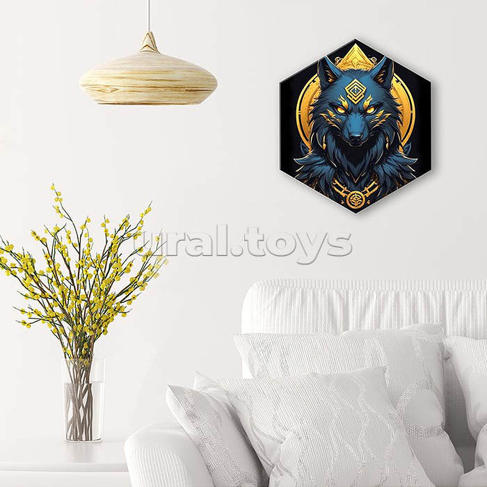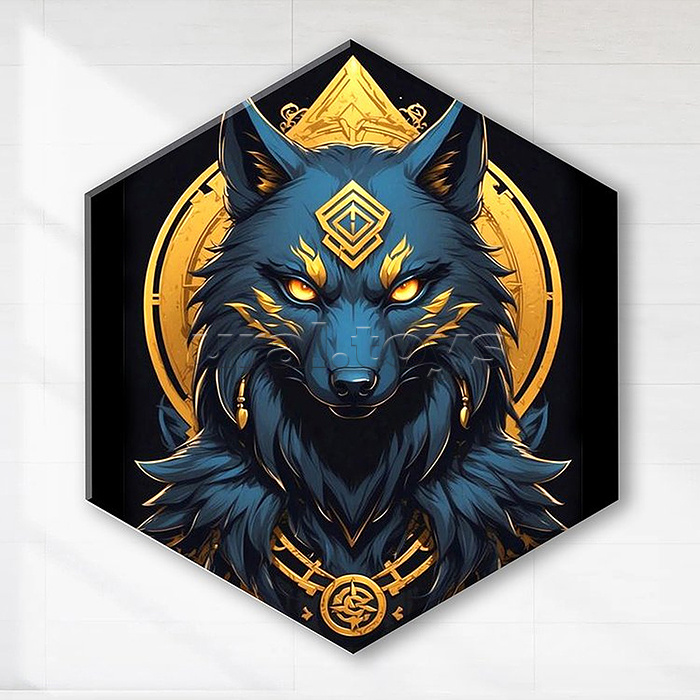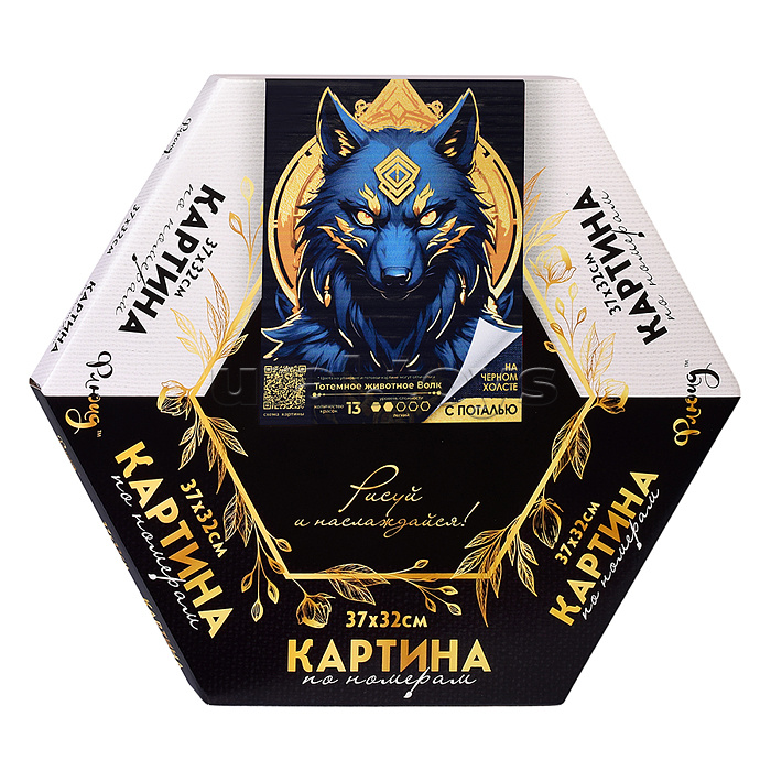 Картина по номерам 37х32 "Тотемное животное. Волк" Гексагон чёрный холст. Поталь (13 цветов)