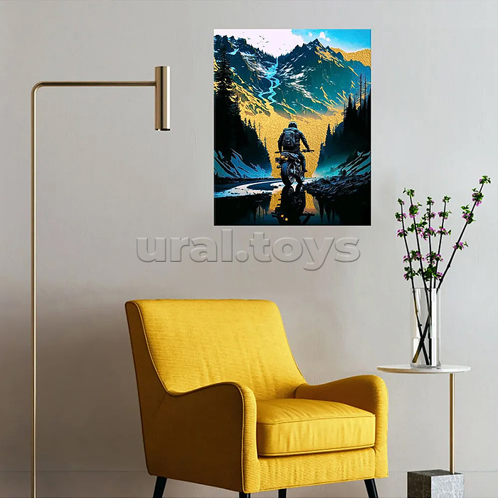 Картина по номерам 40х50 "Горный перевал" с поталью (15 цветов)
