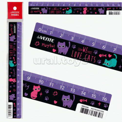 Линейка пластиковая "Funny Cats" 16 см, с дизайном, с индивидуальной маркировкой, с цветным стикером