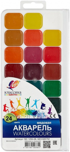 Краски акварельные 24 цв. Классика, медовые, п/упак, б/к