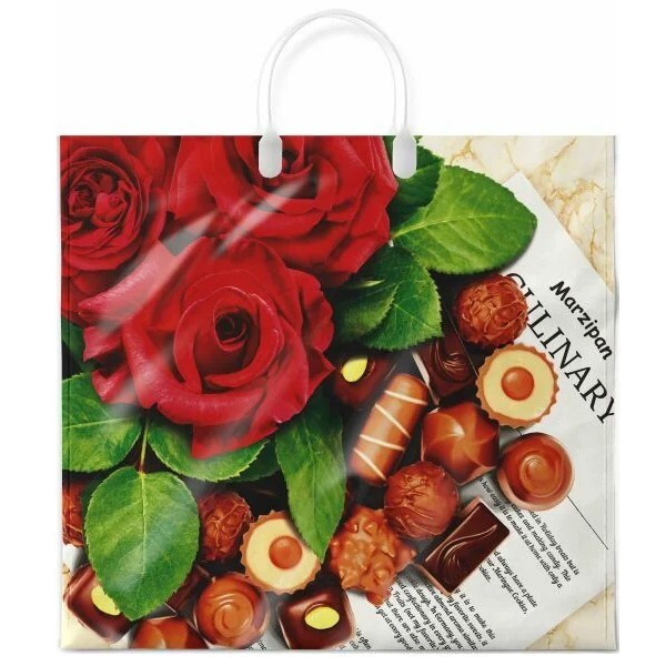 Полиэтиленовый пакет ПВД с пластиковой ручкой 90 мкм 38х35 см Марципан 10 шт