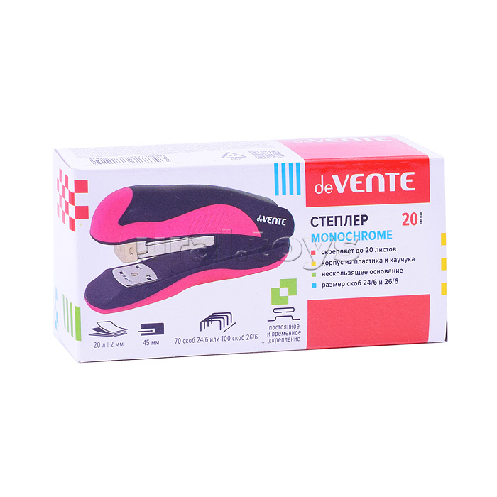 Степлер "MonoChrome" 24/6&26/6 (мощность 20 листов, глубина скрепления 45 мм) пластиковый