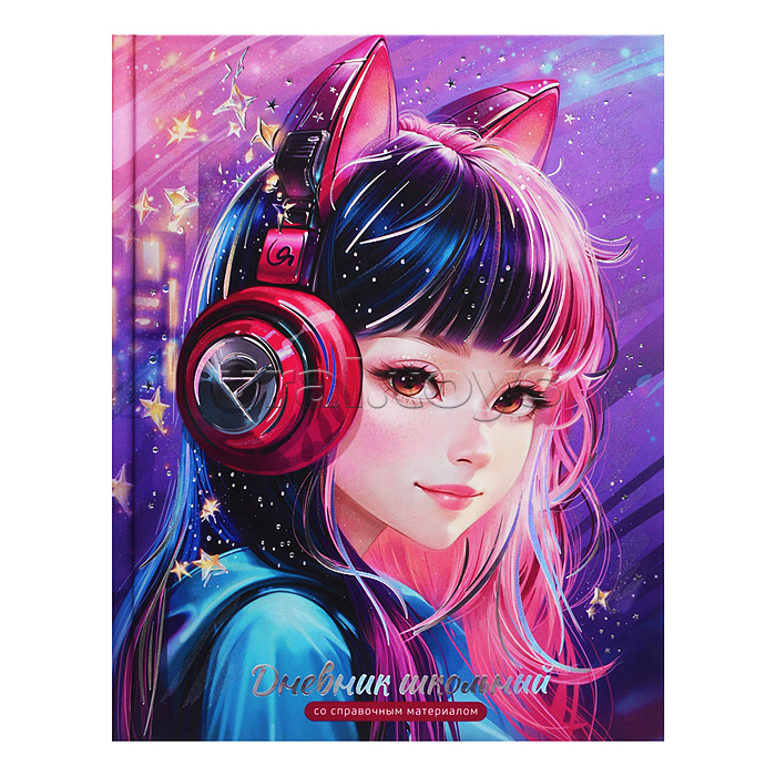 Дневник 1-11кл. "Девочка в наушниках" твёрдый переплёт 7БЦ, А5+, 48 л., выборочный перламутровый лак