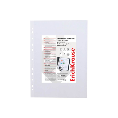Набор перфофайлов пластиковых ErichKrause Glossy Clear, 60 мкм, A4, прозрачный (в пакете по 10 шт.)