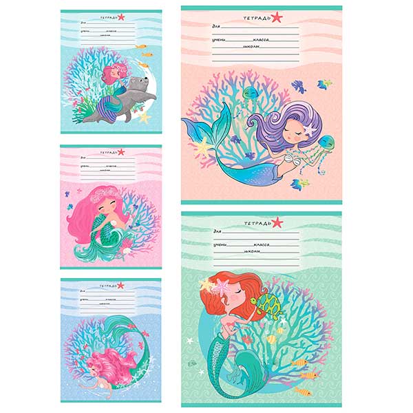 Тетрадь 12л. кл. "Милые русалочки" 5дизайнов, цветная мелов.обл.