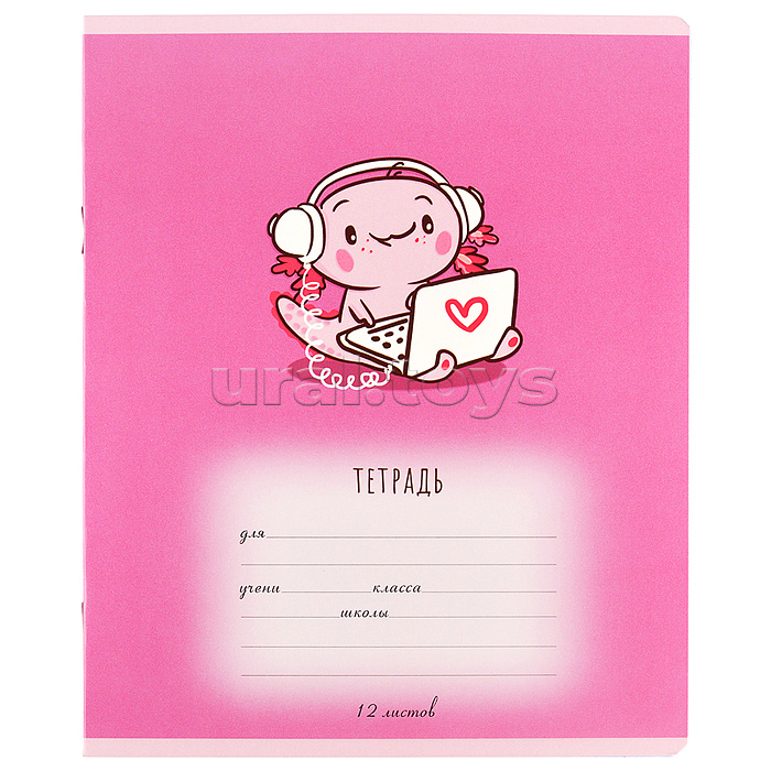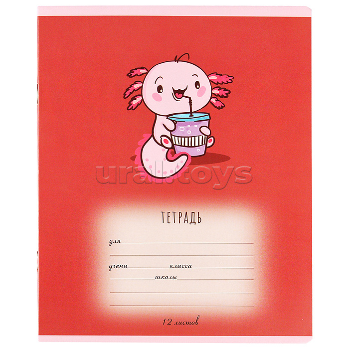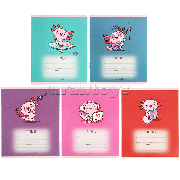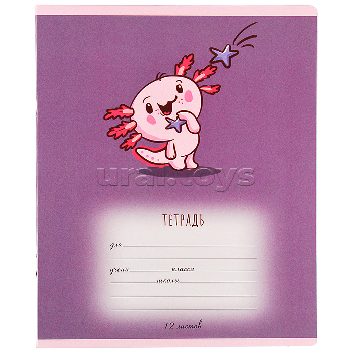Тетрадь 12л. клетка А5 скрепка S "Аксолотль" УФ выборочный Брайль 5%