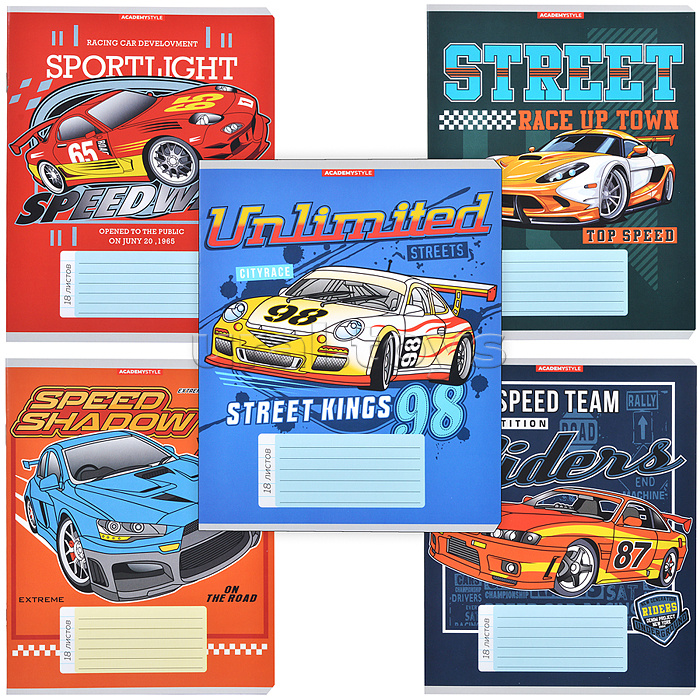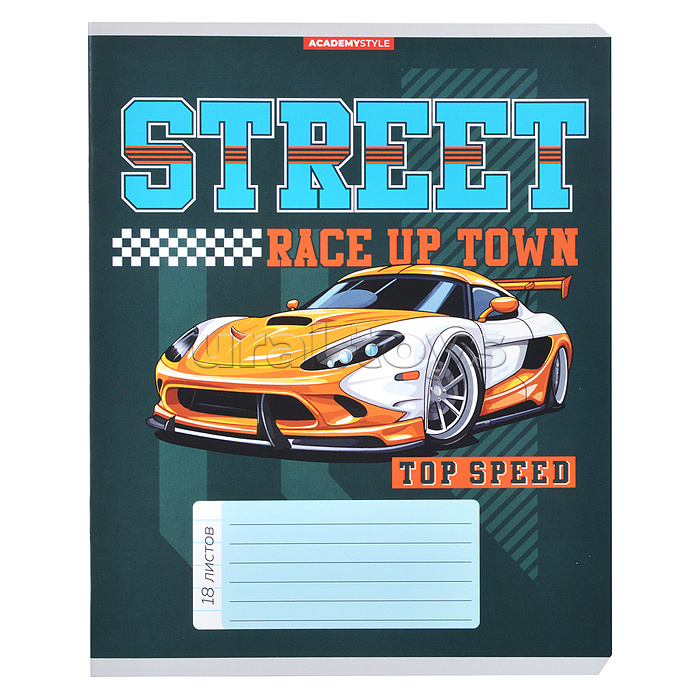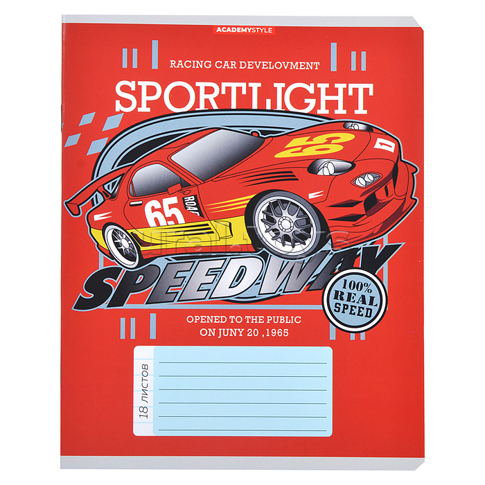 Тетрадь 18л А5 линейка "Спортивные машины"
