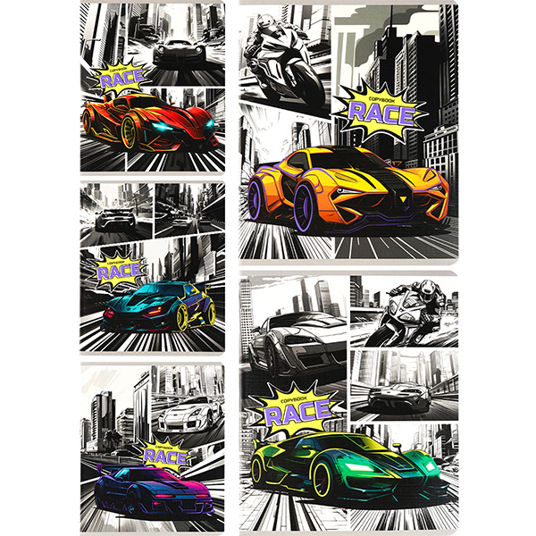 Тетрадь 48л. кл. "Авто в стиле комиксов" 5 дизайнов, цветная мелованная обложка