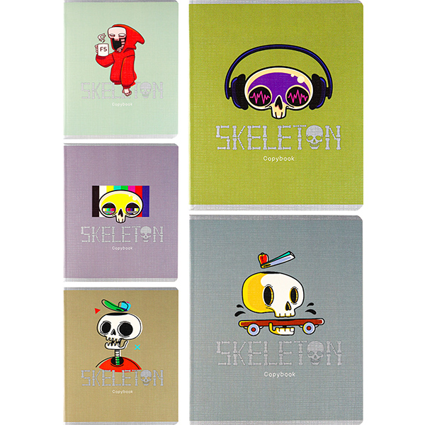 Тетрадь 48л. кл. "Мультяшный скелетон" 5 дизайнов, цветная мелованная обложка