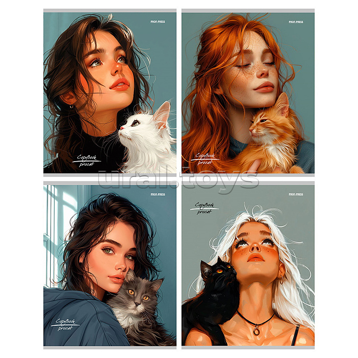 Тетрадь 96л. клетка "Девушки и коты"