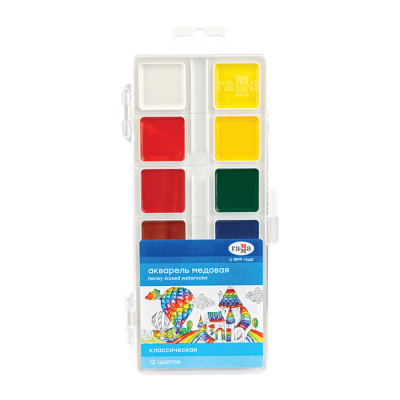 Акварель Гамма "Классическая", медовая, 12 цветов, без кисти, пластик. упак., европодвес 1009194 293985 191378